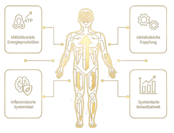 Energieproduktion, neuro-vegetative Steuerung, Entzündungslast und metabolische Balance.